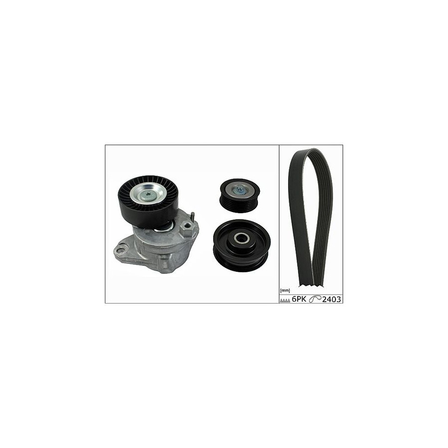 Number of Ribs 6 application V-ribbed belt set Supplementary Article/Info 2 Check the alternator pulley and replace if necessary. Length 1 [mm] 2403 Guarantee 2 years Observe mounting information Similar products of other manufacturers