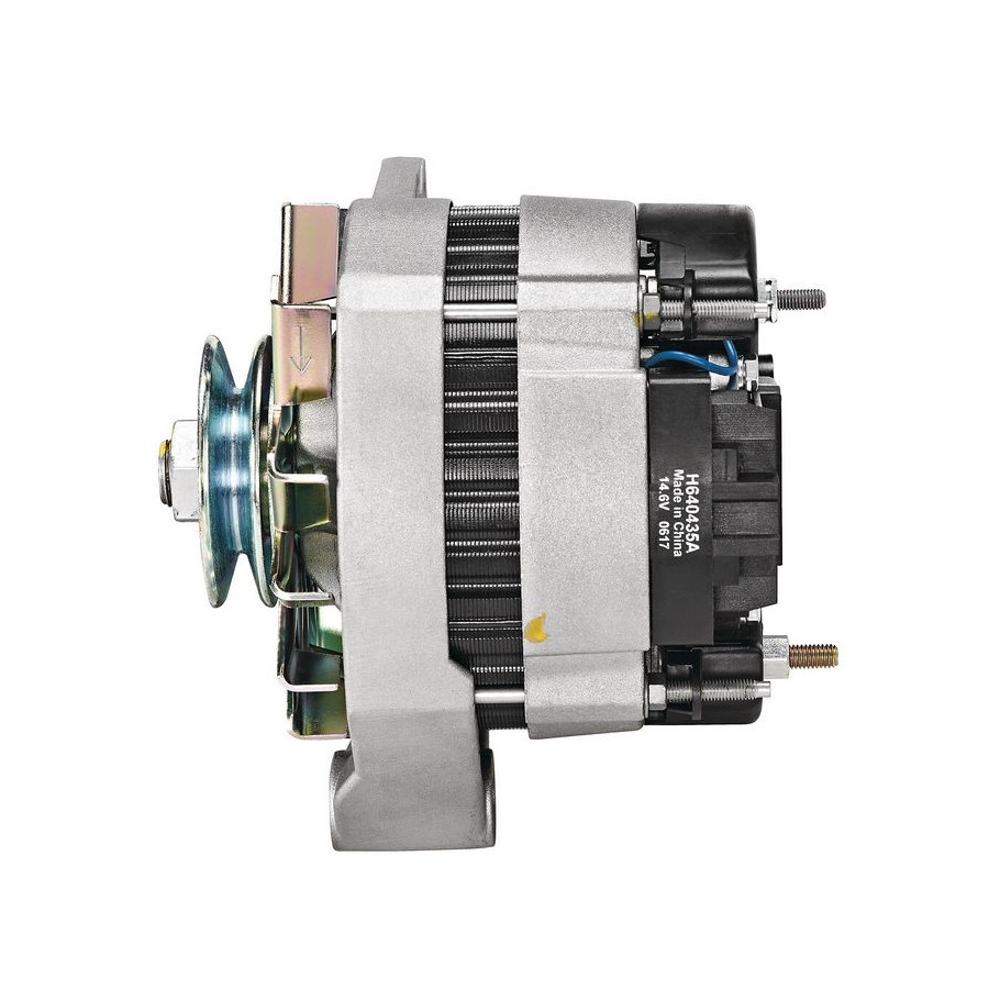 Voltage [V] 14 Number of Ribs 1 Alternator Charge Current [A] 50 Belt Pulley Ø [mm] 67 Pulleys With v-ribbed belt pulley Position / Degree L 45 Rotation Direction Clockwise rotation Clamp B+ / L Guarantee 2 years Method of attachment Double Pivot Lever Weight [kg] 5,63 New part without deposit Similar products of other manufacturers