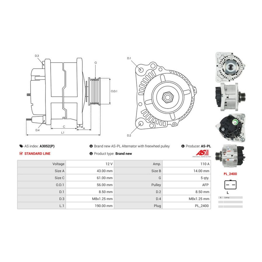 Manufacturer Manufacturer number Price AD KÜHNER 301762RIS AD KÜHNER 301762RI AD KÜHNER 301762RIV AS-PL A3052(P) (this product) ASHIKA AL-194JM BORG & BECK BBA2354 CASCO CAL15102AS CASCO CAL15102GS CASCO CAL10B36GS ELTA AUTOMOTIVE EZ4742 ERA 210280A ERA 210280R ERA 210280 ERA 211266R FEBI BILSTEIN 193421 FISPA A12BH0043 Manufacturer Manufacturer number Price HERTH+BUSS ELPARTS 32439475 HOFFER H55101374G JAPANPARTS AL-194JM JAPKO AL-194JM KAMOKA 8620046 MEAT & DORIA 55101374G MOBILETRON AL-VA009 NPS N511N27 Omnicraft 2137010 PRESTOLITE ELECTRIC A2104V SIDAT A12BH0043 VALEO 437434 VALEO 439475 VALEO 200079 WAI 23174N WILMINK GROUP WG2471390 -