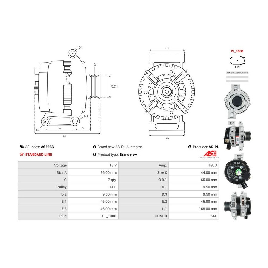 Voltage [V] 12 Alternator Charge Current [A] 150 Pulleys With freewheel belt pulley for OE number 104210-1650 Quality Standard line Guarantee 2 years New part without deposit Similar products of other manufacturers