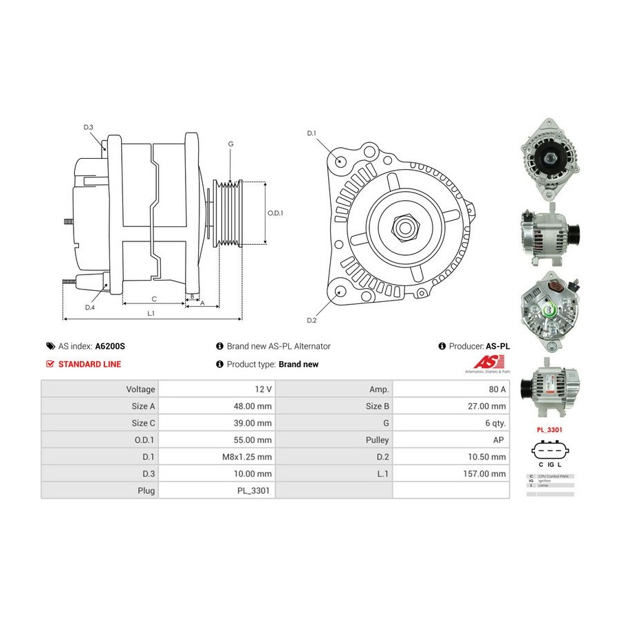Manufacturer Manufacturer number Price AD KÜHNER 553750RID AD KÜHNER 553750RI AES 115.529.080.050 AES 115.529.080.260 AS-PL A6200S (this product) AS-PL A6200(DENSO) ATL Autotechnik L 52 840 BTS Turbo G103778 CASCO CAL40355AS CASCO CAL40355GS CEVAM 4348 CV PSH 115.529.080.415 CV PSH 115.529.080.050 CV PSH 115.529.080.260 CV PSH 115.529.080.340 Manufacturer Manufacturer number Price DRI 217128802 ELSTOCK 28-6913 ERA 209395R ERA 209527A ERA 209395 FISPA A12DE1448A2 FRIESEN 9091067 HERTH+BUSS JAKOPARTS J5116036 QUINTON HAZELL QRA0407 SIDAT A12DE1448A2 TURBO MOTOR AL03377 WAI A129.922 WAI 20397N WALKER WAL01344 -