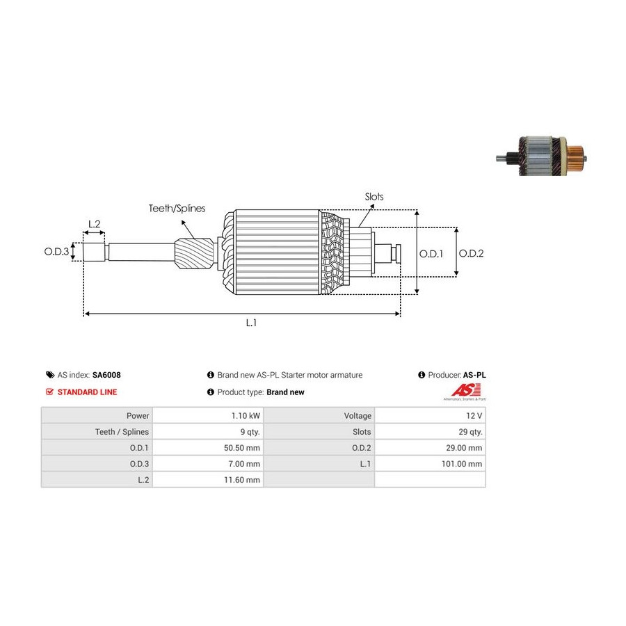 | Starter motor power [kW] | 1,1 |