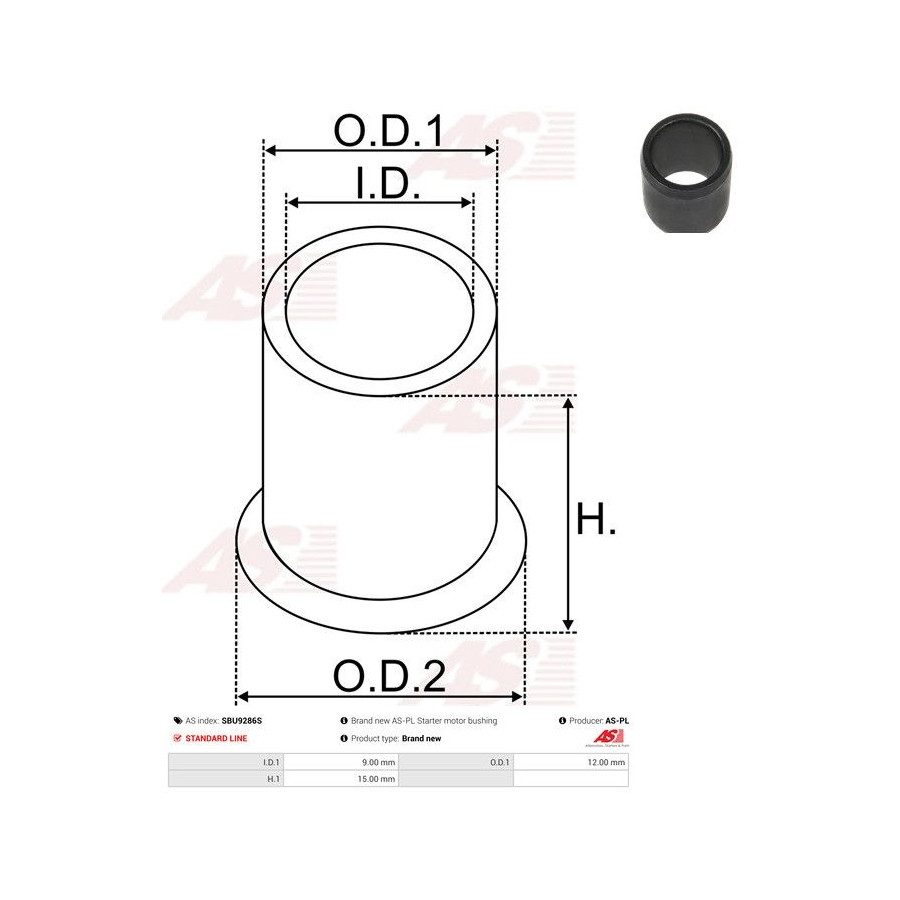Inner diameter [mm] 9,00 Outer Diameter 1 [mm] 12,00 Quality Standard line Guarantee 2 years Height [mm] 15,00 New part without deposit -