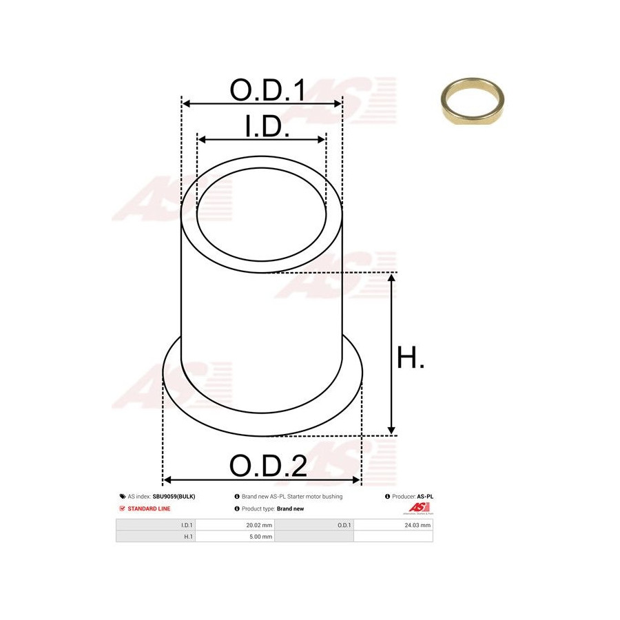 Inner diameter [mm] 20,02 Outer Diameter 1 [mm] 24,03 Quality Standard line Guarantee 2 years Height [mm] 5,00 New part without deposit  -