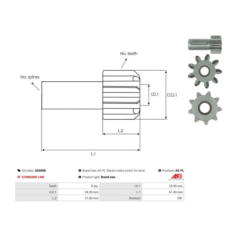 | Number of Teeth | 9 |