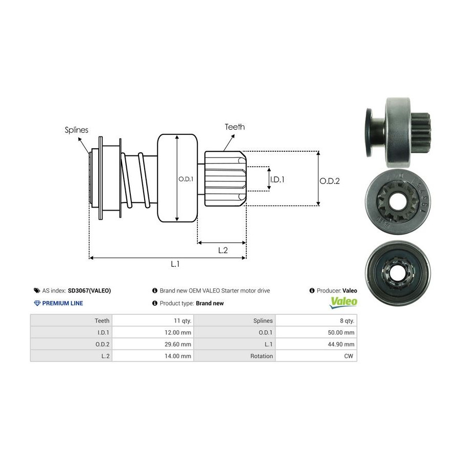 Inner diameter [mm] 12,00 Number of Teeth 11 Outer Diameter 1 [mm] 50,00 Outer diameter 2 [mm] 29,60 Quality PREMIUM LINE Length 1 [mm] 44,9 Rotation Direction Clockwise rotation Guarantee 2 years New part without deposit -