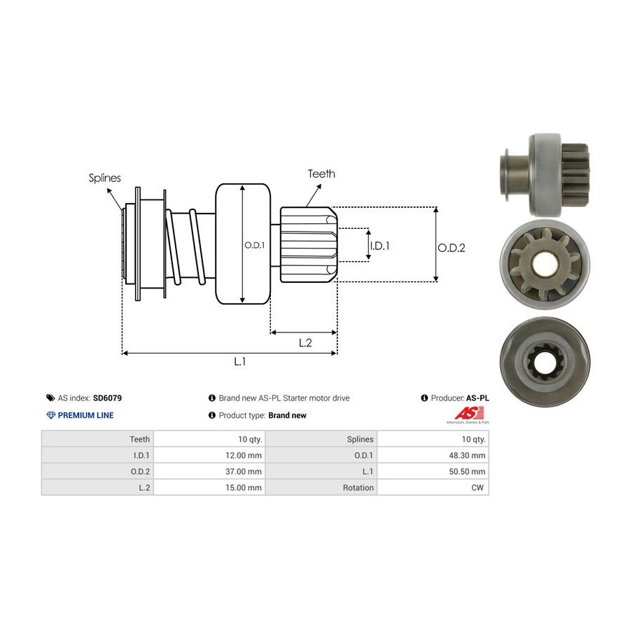 Inner diameter [mm] 12,00 Number of Teeth 10 Outer Diameter 1 [mm] 48,30 Outer diameter 2 [mm] 37,00 Quality PREMIUM LINE Length 1 [mm] 50,5 Rotation Direction Clockwise rotation Guarantee 2 years New part without deposit -
