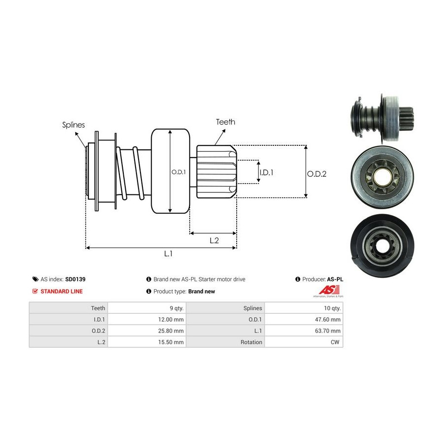 Inner diameter [mm] 12,00 Number of Teeth 9 Outer Diameter 1 [mm] 47,60 Outer diameter 2 [mm] 25,80 Quality Standard line Length 1 [mm] 63,7 Rotation Direction Clockwise rotation Guarantee 2 years New part without deposit Similar products of other manufacturers