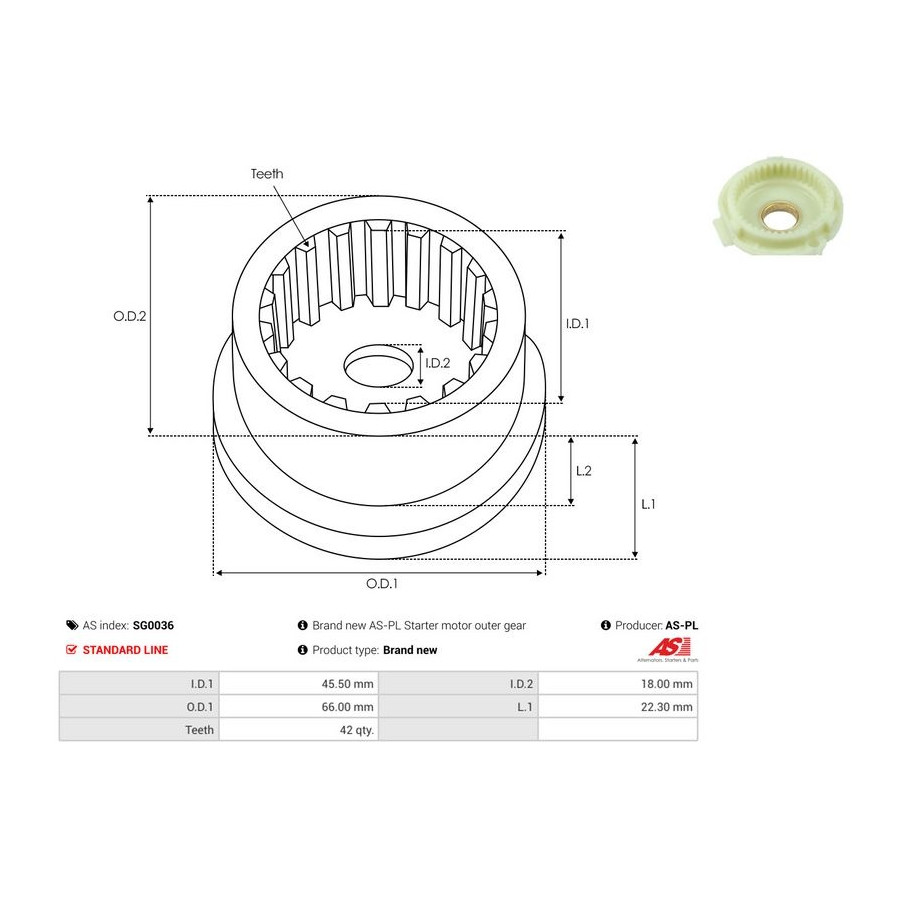 | Number of Teeth | 42 |