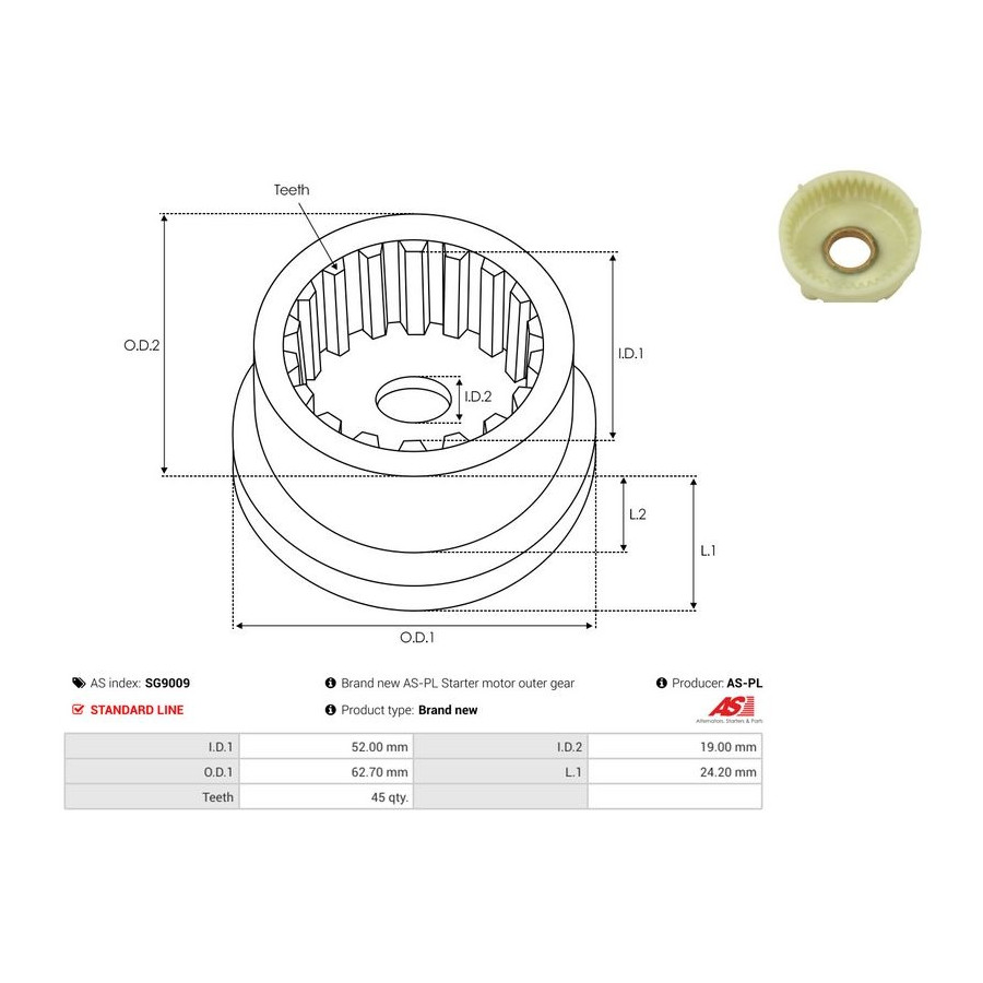 | Number of Teeth | 45 |