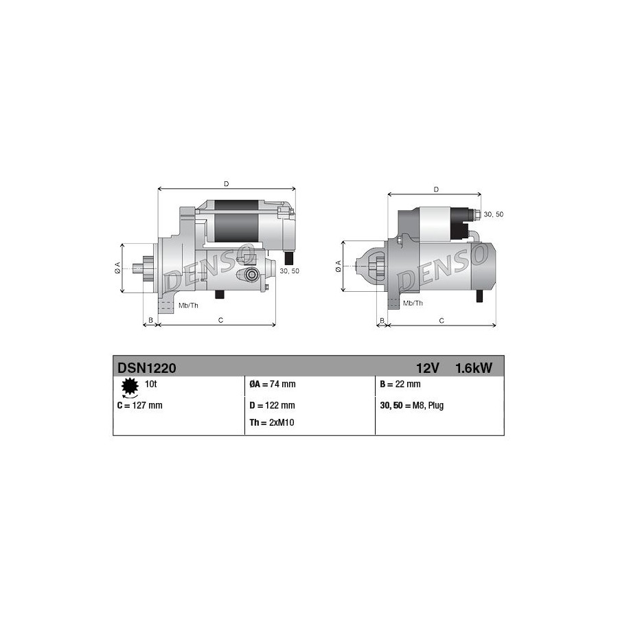 Number of Teeth 10 Rotation Direction Clockwise rotation Starter motor power [kW] 1,6 Voltage [V] 12 Quality Denso Guarantee 2 years Gross weight [g] 3160 New part without deposit Similar products of other manufacturers