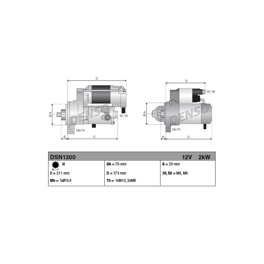 Number of Teeth 9 Rated Power [kW] 2 Rotation Direction Clockwise rotation Voltage [V] 12 Quality Denso Guarantee 2 years Gross weight [g] 5160 New part without deposit Similar products of other manufacturers
