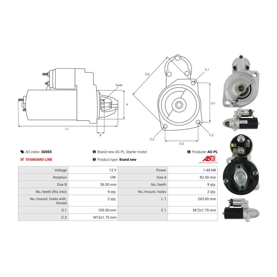 Number of Teeth 9 Rated Power [kW] 1,4 Number of mounting bores 2 Rotation Direction Clockwise rotation Voltage [V] 12 Version 0001108030 Quality Standard line Guarantee 2 years New part without deposit Similar products of other manufacturers