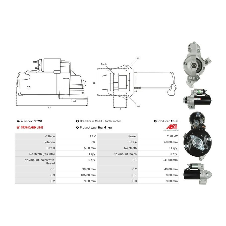 Number of Teeth 11 Rated Power [kW] 2,2 Number of mounting bores 3 Rotation Direction Clockwise rotation Voltage [V] 12 Version 0001139015 Quality Standard line Guarantee 2 years New part without deposit Similar products of other manufacturers