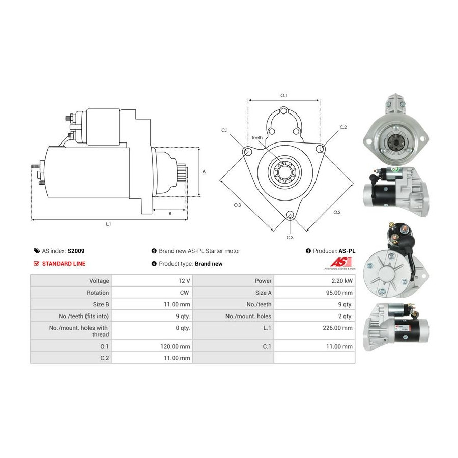 | Starter motor power [kW] | 2,2 |