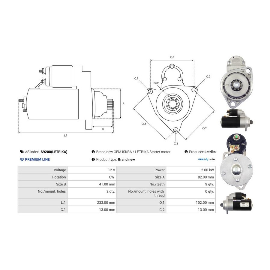 Number of Teeth 9 Rated Power [kW] 2 Number of mounting bores 2 Rotation Direction Clockwise rotation Voltage [V] 12 Version MS432 Quality PREMIUM LINE Guarantee 2 years New part without deposit Similar products of other manufacturers