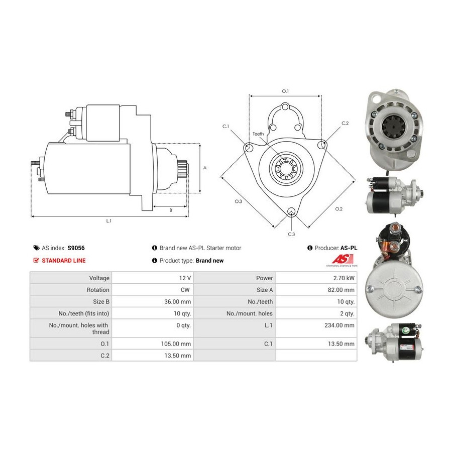 | Starter motor power [kW] | 2,7 |