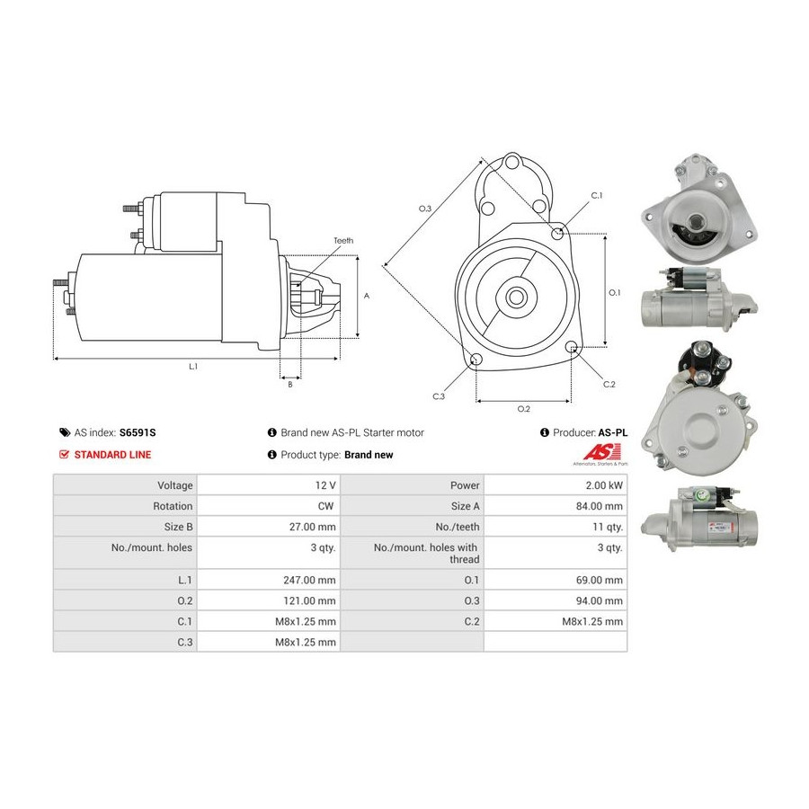 Number of Teeth 11 Rated Power [kW] 2 Number of mounting bores 3 Rotation Direction Clockwise rotation Voltage [V] 12 Version 428000-9470 Quality Standard line Guarantee 2 years New part without deposit Similar products of other manufacturers