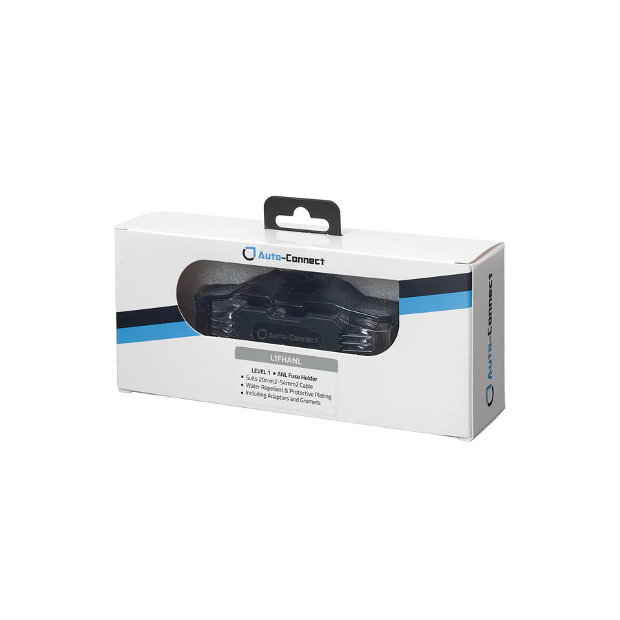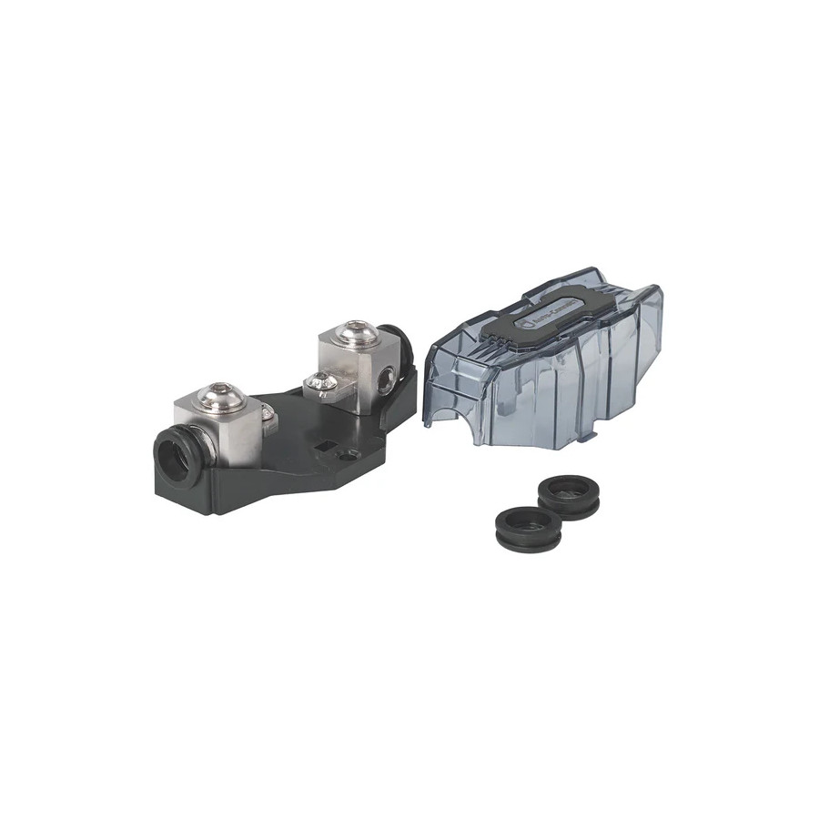 The L1FHANL is a reliable and durable solution for securing your ANL or AFS fuse while ensuring optimal current distribution. Designed for high-performance car audio and electrical setups, this fuse holder features a single 20-54mm² (4-0 AWG) input and output for a secure and protected connection. With an included sleeve for 20mm² (4 AWG) wire adaptation, it offers flexibility for various installations.