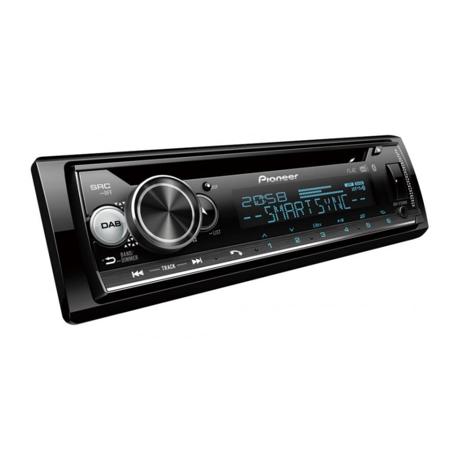 1-DIN CD tuner with DAB/DAB+, Bluetooth, multi-color lighting, USB, Spotify, Pioneer Smart Sync app and support for Apple and Android devices.