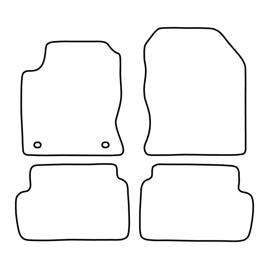 These car mats are made of durable black velour and feature a scalloped edge, giving them a luxurious look. They also have the standard mounting holes so you can easily click them into your car, just like the originals. They also have a granulate anti-slip layer to prevent the mats from slipping.