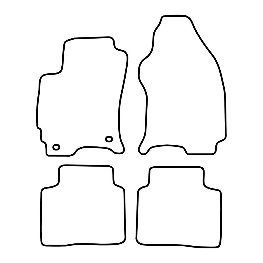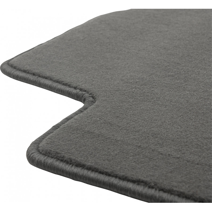 These car mats are made of durable black velour and feature a scalloped edge, giving them a luxurious look. They also have the standard mounting holes so you can easily click them into your car, just like the originals. They also have a granulate anti-slip layer to prevent the mats from slipping.
