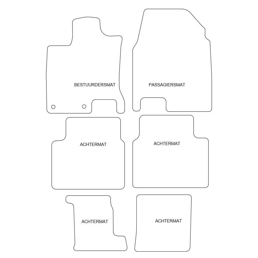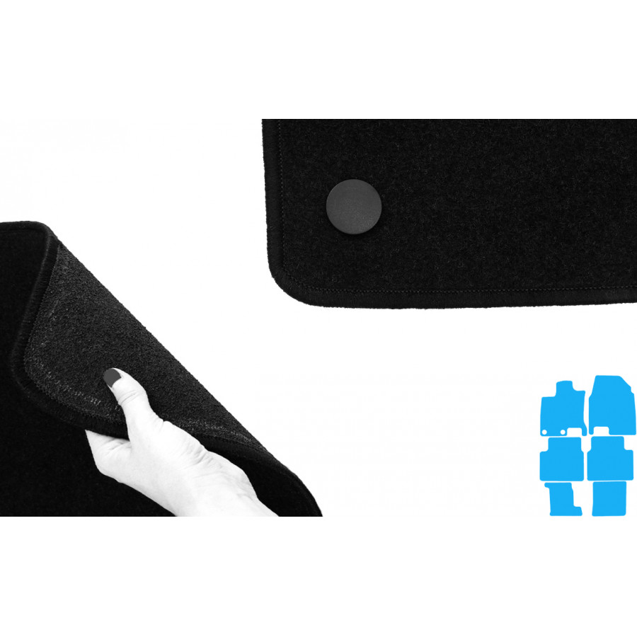 You can easily and safely place these car mats on the mounting holes of your car. The underside is made of sturdy anti-slip granulate and the high-quality needle felt ensures a very long life. In some cases you have to transfer the attachment of your old mats and / or a mat may consist of one piece (MPV / bus). Would you like help ordering the right car mats? Ask our customer service!