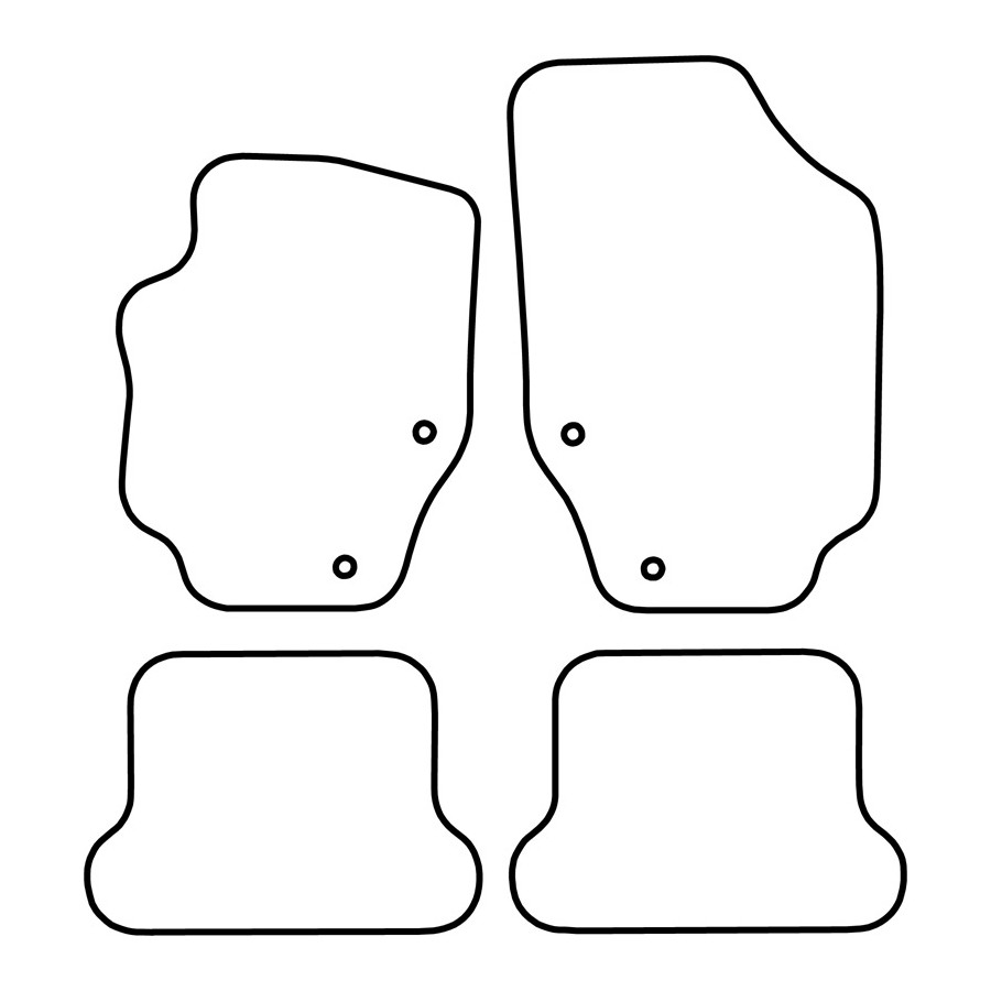 These car mats are made of durable black velour and feature a scalloped edge, giving them a luxurious look. They also have the standard mounting holes so you can easily click them into your car, just like the originals. They also have a granulate anti-slip layer to prevent the mats from slipping.