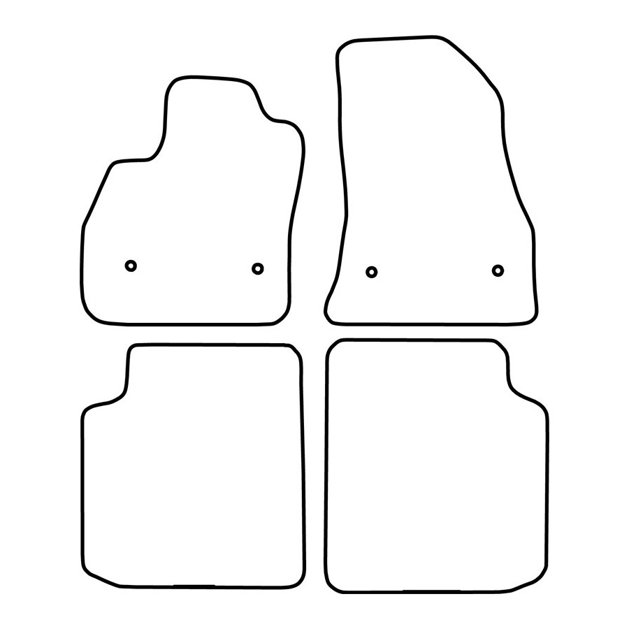 These car mats are made of durable black velour and feature a scalloped edge, giving them a luxurious look. They also have the standard mounting holes so you can easily click them into your car, just like the originals. They also have a granulate anti-slip layer to prevent the mats from slipping.