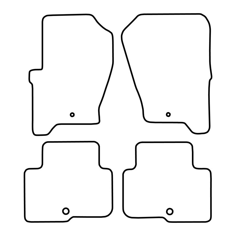 These car mats are made of durable black velour and feature a scalloped edge, giving them a luxurious look. They also have the standard mounting holes so you can easily click them into your car, just like the originals. They also have a granulate anti-slip layer to prevent the mats from slipping.