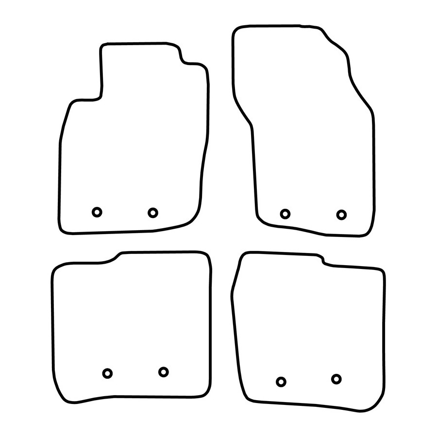 These car mats are made of durable black velour and feature a scalloped edge, giving them a luxurious look. They also have the standard mounting holes so you can easily click them into your car, just like the originals. They also have a granulate anti-slip layer to prevent the mats from slipping.