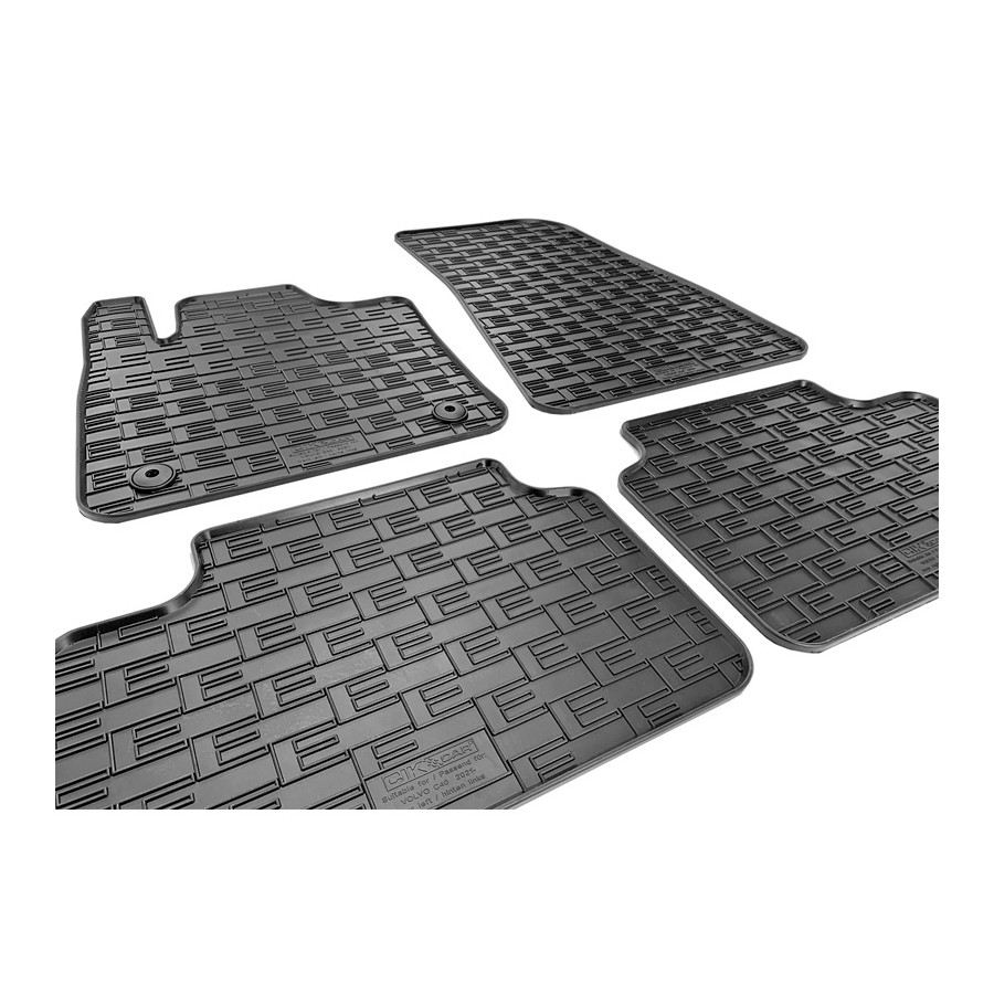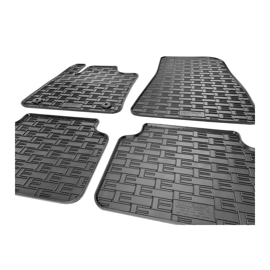 Car mats suitable for Volvo C40 Recharge 2021-These rubber car mats are specially tailored for your car type and will therefore fit exactly. They also have the original mounting points which ensure that the rubber mat remains firmly in place, increasing safety. There is another non-slip layer underneath so that the mat will not slide away. Car mats are an important barrier between the carpet of the car and the dirt and moisture that comes from your shoes. They are specially designed to protect the carpet and your car floor from dirt, wear and salt. These car mats also have a raised edge, which keeps dirt and moisture inside the mat. This keeps the car floor clean and dry. Because these mats are made of rubber, they are easy to clean; you can remove them from the car and pat them out, or wipe them with a damp cloth.Product advantages:Tailor-madeIdeal protection of the car interiorMade of high-quality rubberEasy to clean