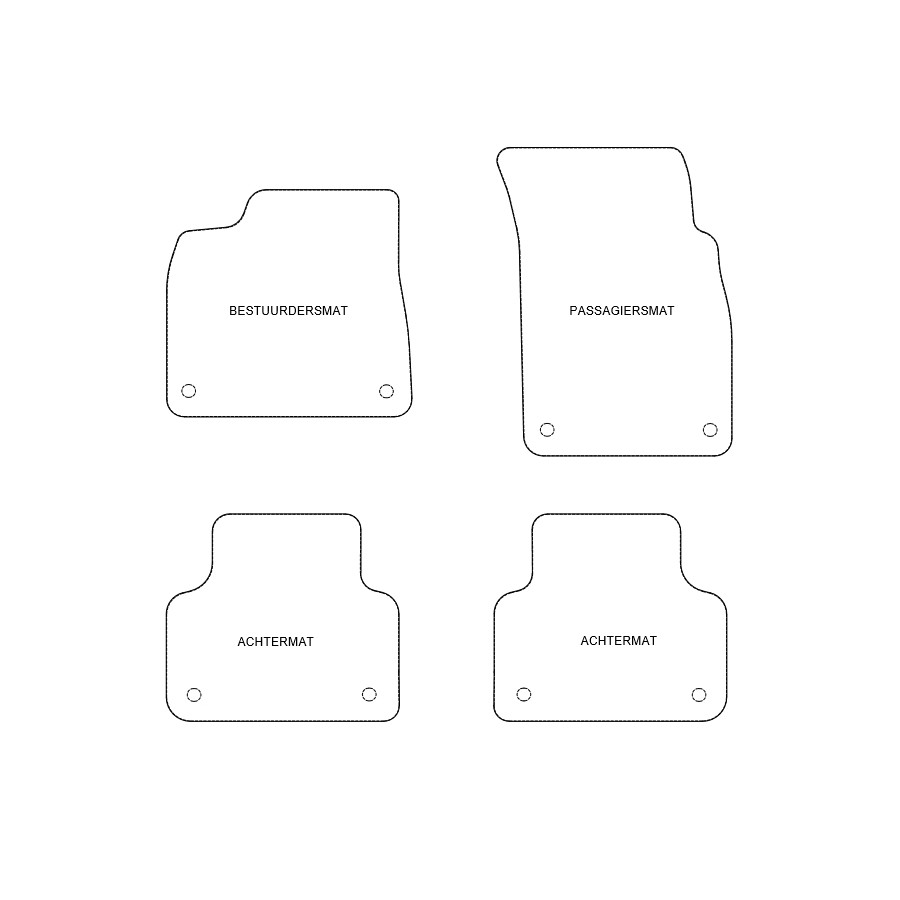 You can easily and safely place these velor car mats yourself on the mounting holes of your car. The bottom is made of sturdy NSF rubber and the high-quality velor ensures a very long life and sound absorption. Thanks to the exclusive banding edge and thick NSF back you get the desired comfort in addition to the luxurious look! In some cases you have to transfer the confirmation of your old mats and / or a mat can consist of one piece (MPV / bus).