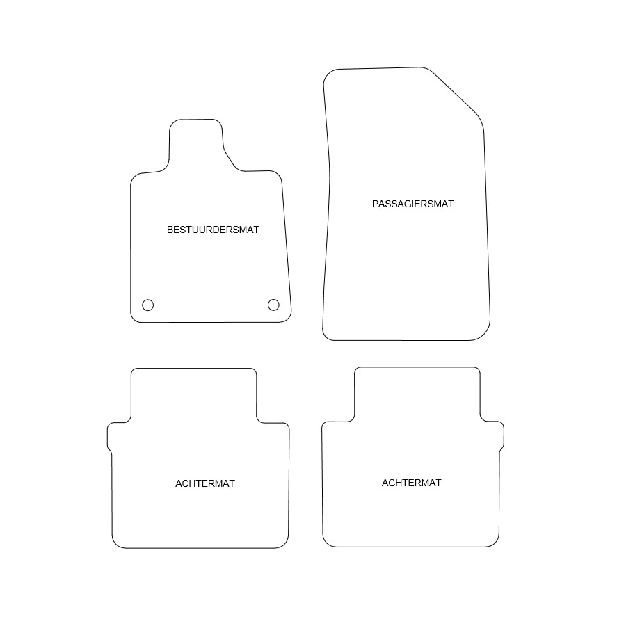 You can easily and safely place these velor car mats yourself on the mounting holes of your car. The bottom is made of sturdy NSF rubber and the high-quality velor ensures a very long life and sound absorption. Thanks to the exclusive banding edge and thick NSF back you get the desired comfort in addition to the luxurious look! In some cases you have to transfer the confirmation of your old mats and / or a mat can consist of one piece (MPV / bus).