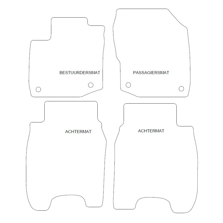 You can place these velor car mats easily and safely on the mounting holes of your car. The bottom is made of sturdy NSF rubber and the high-quality velor ensures a very long service life and noise reduction. Due to the exclusive bandeerrand and thick NSF back you will get the desired comfort in addition to the luxurious appearance! In some cases you have to transfer the fixing of your old mats and / or a mat can consist of one piece (MPV / bus).