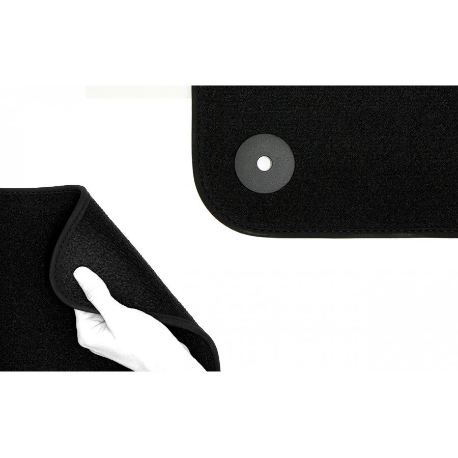 You can easily and safely place these velor car mats on the mounting holes of your car. The underside is made of sturdy NSF rubber and the high-quality velor ensures a very long life and noise reduction. Thanks to the exclusive banding edge and thick NSF back, you also get the desired comfort in addition to the luxurious appearance! In some cases you have to transfer the attachment of your old mats and / or a mat may consist of one piece (MPV / bus).