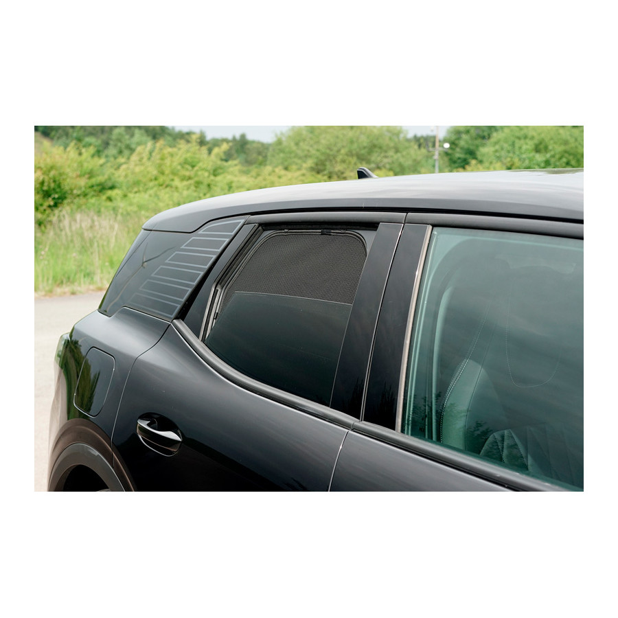 A set of custom-fit Car Shades sunshades for the rear doors, perfect for beautiful summer weather, long vacation trips, and especially for your passengers. The sunshades keep out the bright sun, and thanks to the specially woven fabric, they give your car a beautiful, discreet appearance, giving your windows the look of tinted windows. Simply click the Car Shades between your window frames and remove them just as easily.