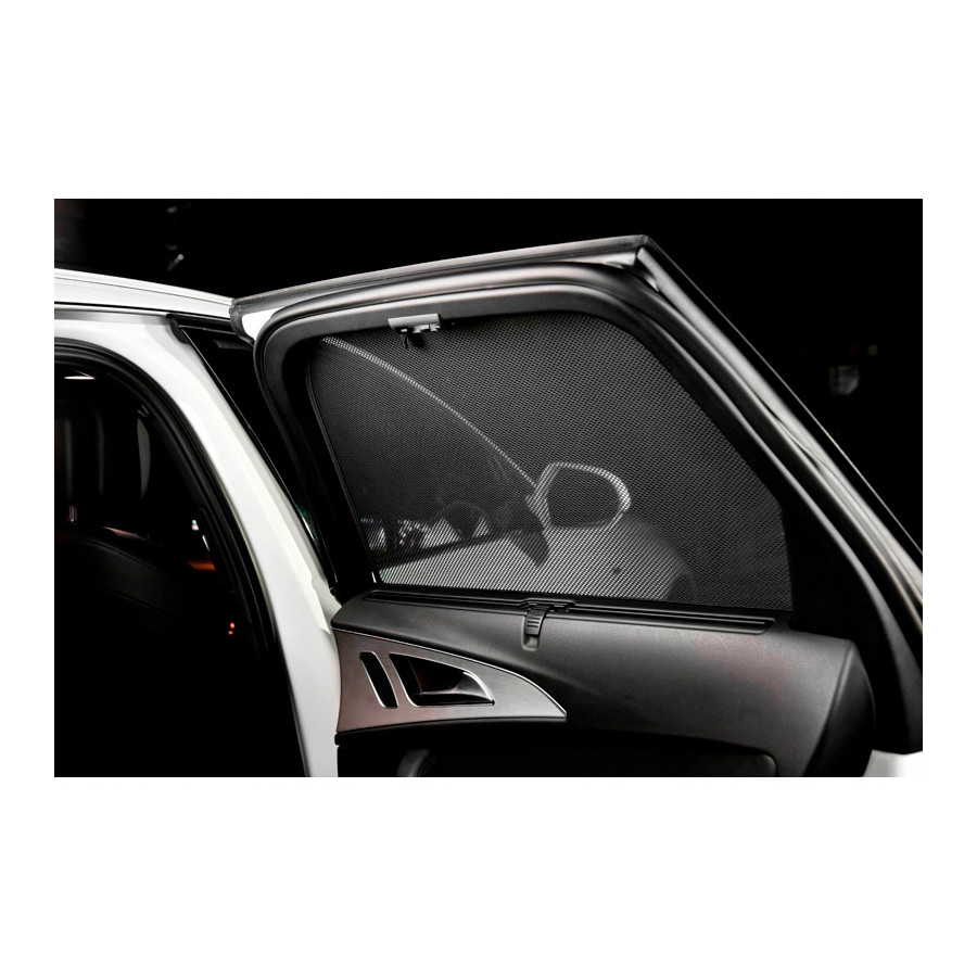 Set of ready-made Car Shades sun blinds, perfect during the beautiful summer weather, long holiday trips and especially for your passengers. The sun blinds keep the bright sun outside and due to the specially woven cloth structure they give your car a nice discreet appearance, your windows get the look of tinted windows. You simply click the Car Shades between your window frames and remove them just as easily.