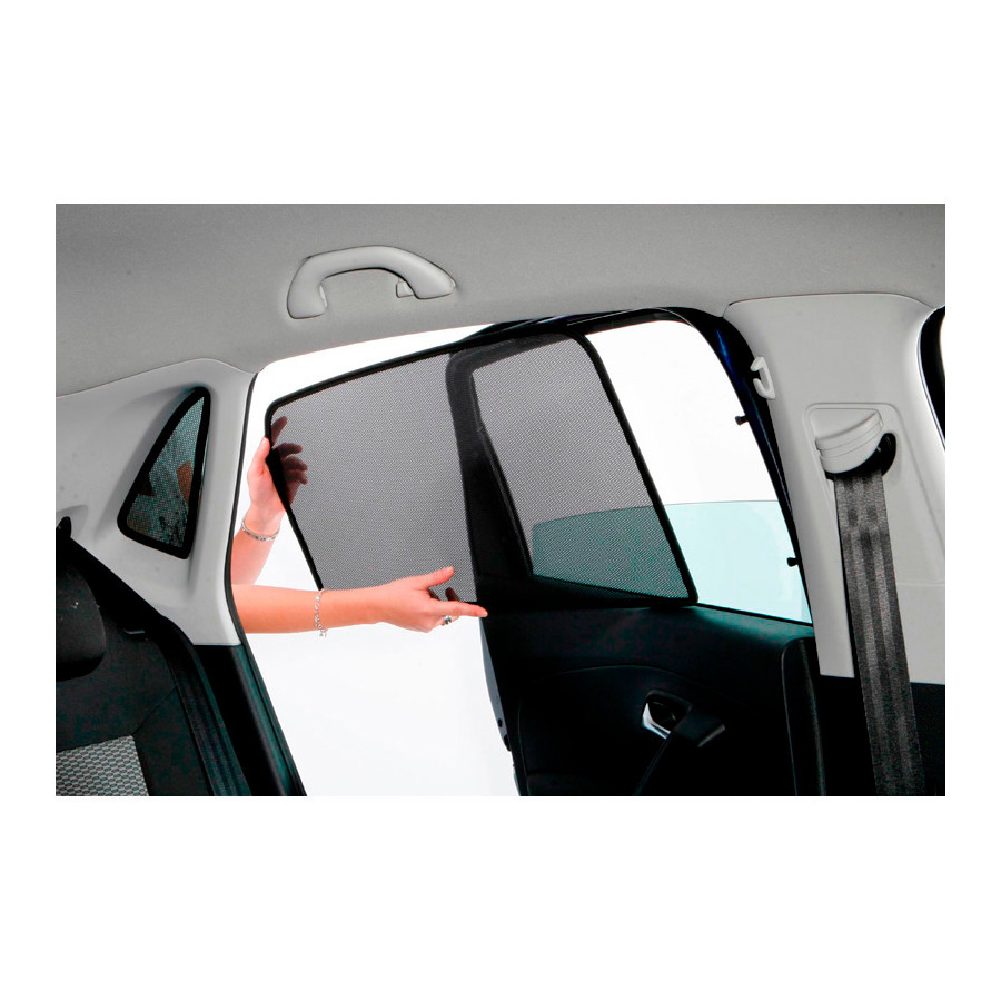 You simply click this ClimAir Sonniboy car sunblind between your window styles and remove them just as easily. They are the perfect alternative to window film, sun blinds and expensive privacy glass because they combine everything in 1. The Sonniboy Shades keep the sun out, you can just drive with your window open. This way you can let the cool wind in during the warm weather. Even with a completely open window, sun rays and insects have no chance to penetrate. In cars without air conditioning, it is an indispensable solution against the sun and heat. Each set of Sonniboy Shades consists of ready-made sunshades for all windows from the B-pillar.