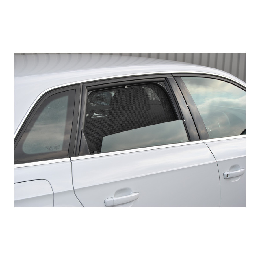 Set of ready-made Car Shades sunblinds for the rear doors, perfect during the beautiful summer weather, long holiday trips and especially for your passengers. The sunshades keep the bright sun out and the specially woven fabric structure gives your car a nice discreet appearance, your windows get the look of tinted windows. You simply click the Car Shades between your window styles and remove them just as easily.