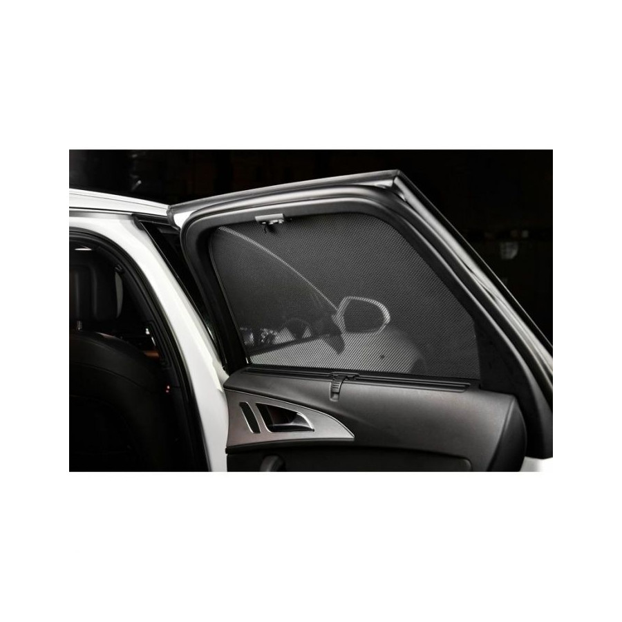 Set of ready-made Car Shades sunblinds for the rear doors, perfect during the beautiful summer weather, long holiday trips and especially for your passengers. The sunshades keep the bright sun out and the specially woven fabric structure gives your car a nice discreet appearance, your windows get the look of tinted windows. You simply click the Car Shades between your window styles and remove them just as easily.