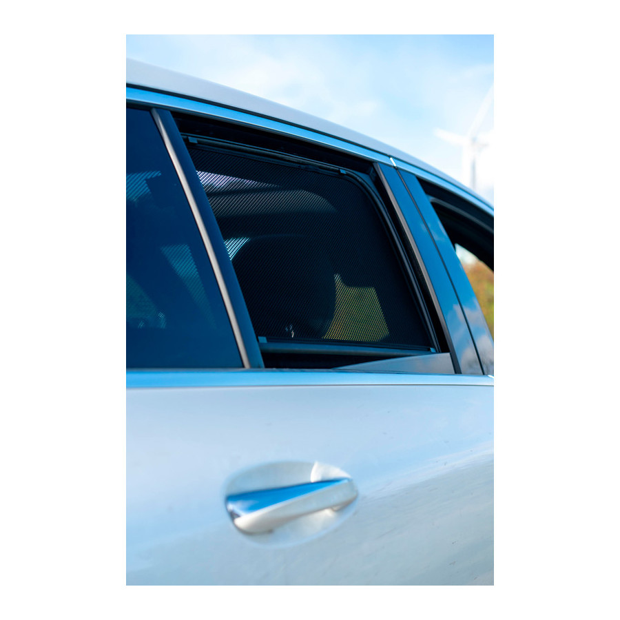 Set of ready-made Car Shades sunblinds for the rear doors, perfect during the beautiful summer weather, long holiday trips and especially for your passengers. The sunshades keep the bright sun out and the specially woven fabric structure gives your car a nice discreet appearance, your windows get the look of tinted windows. You simply click the Car Shades between your window styles and remove them just as easily.
