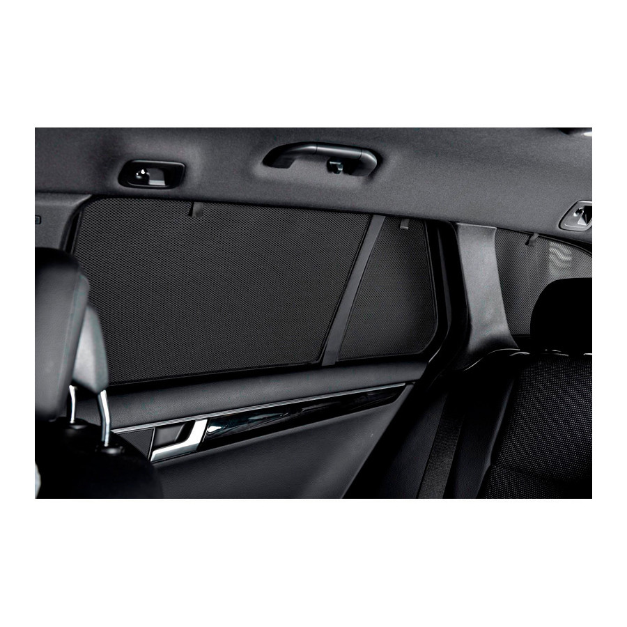 Set of ready-made Car Shades sunblinds for the rear doors, perfect during the beautiful summer weather, long holiday trips and especially for your passengers. The sunshades keep the bright sun out and the specially woven fabric structure gives your car a nice discreet appearance, your windows get the look of tinted windows. You simply click the Car Shades between your window styles and remove them just as easily.