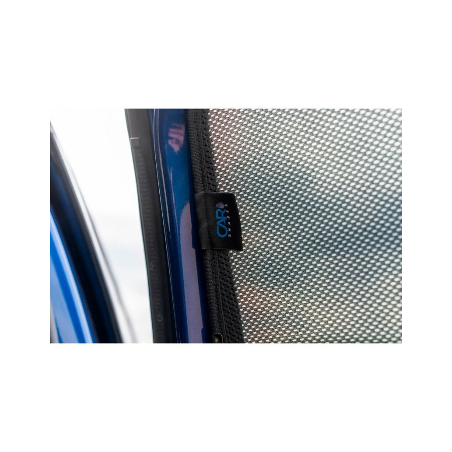 Set of ready-made Car Shades sunblinds for the rear doors, perfect during the beautiful summer weather, long holiday trips and especially for your passengers. The sunshades keep the bright sun out and the specially woven fabric structure gives your car a nice discreet appearance, your windows get the look of tinted windows. You simply click the Car Shades between your window styles and remove them just as easily.