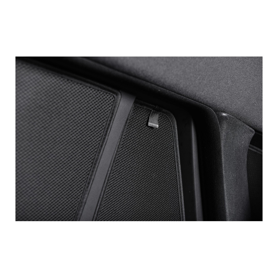 Set of ready-made Car Shades sunblinds for the rear doors, perfect during the beautiful summer weather, long holiday trips and especially for your passengers. The sunshades keep the bright sun out and the specially woven fabric structure gives your car a nice discreet appearance, your windows get the look of tinted windows. You simply click the Car Shades between your window styles and remove them just as easily.
