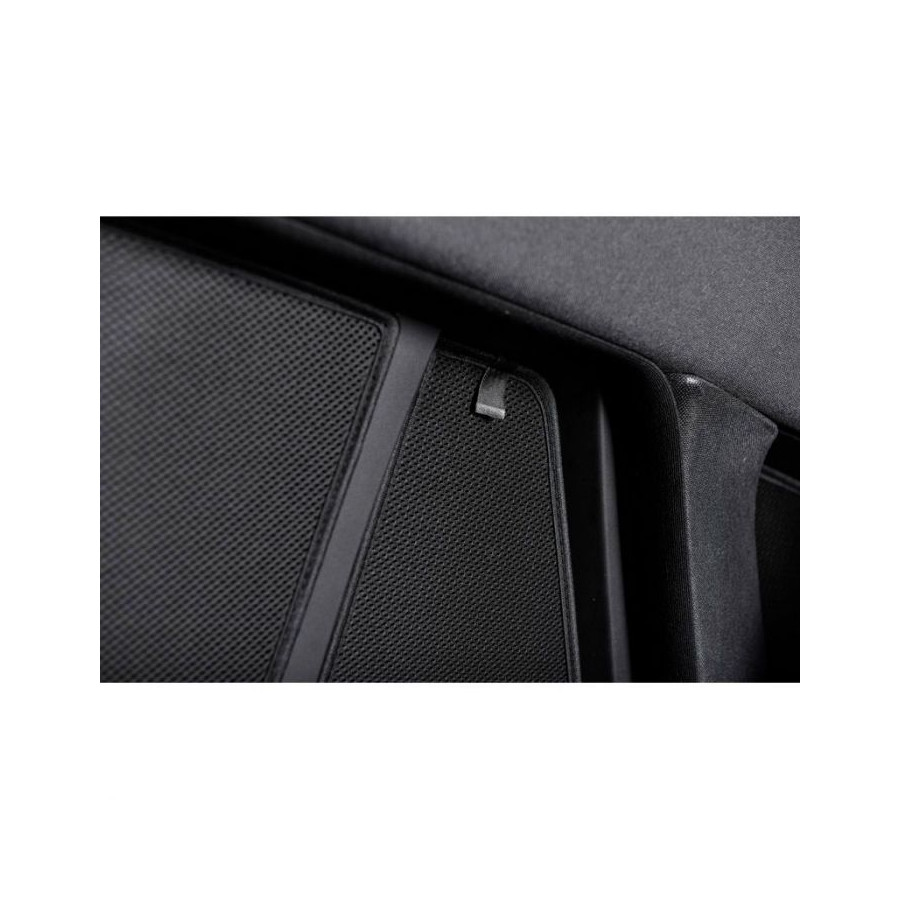 Set of ready-made Car Shades sunblinds for the rear doors, perfect during the beautiful summer weather, long holiday trips and especially for your passengers. The sunshades keep the bright sun out and the specially woven fabric structure gives your car a nice discreet appearance, your windows get the look of tinted windows. You simply click the Car Shades between your window styles and remove them just as easily.