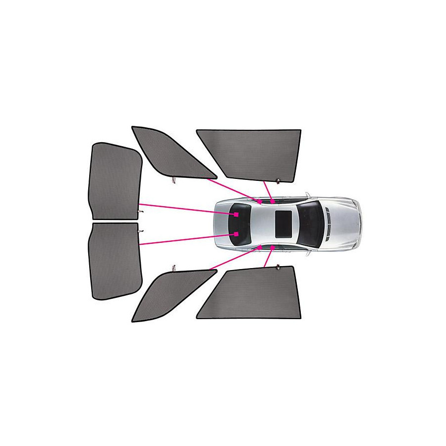 Content 4-piece Content set Contains shades for all rear windows Execution of rear window Rear window from two parts Mounting clips Including Guarantee 3 years -