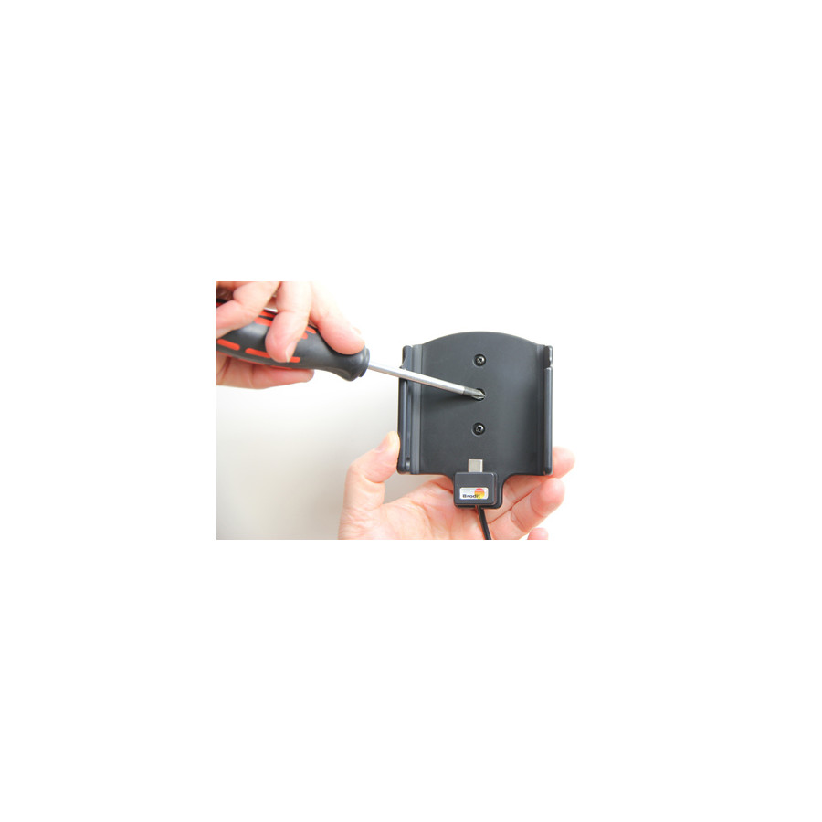Keep your phone battery fully charged in an active holder, always within reach! Neat, discreet and handy. Custom-made with a perfect, secure fit. Use a USB cable with a sig-plug adapter to connect to the vehicle's USB outlet or 12/24V socket. You have full access to the camera and all buttons when the device is in the holder. It is easy to slide the device into place in the holder, so that it is connected to charging and remove it from the holder when you leave the car. Only fits devices without the supplied back cover.