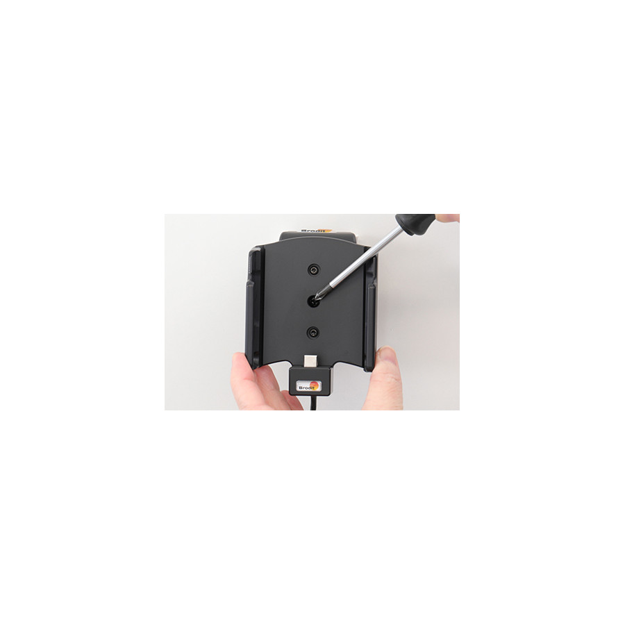 The holder is equipped with a tilt swivel so you can easily adjust the angle for better viewing, or switch between portrait and landscape mode. Tilts 17° and swivels 360°. Mounting plate 42x50 mm with AMPS holes. Made of high grade black ABS/Acetal plastic. Made in Sweden. Connect the power cable with a 2A fuse. Professional installation recommended. Attach onto a Pedestal Mount or a ProClip mounting platform.