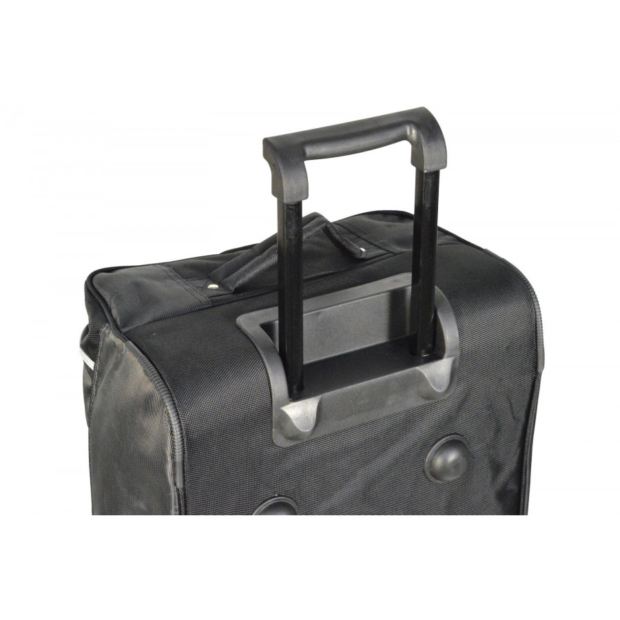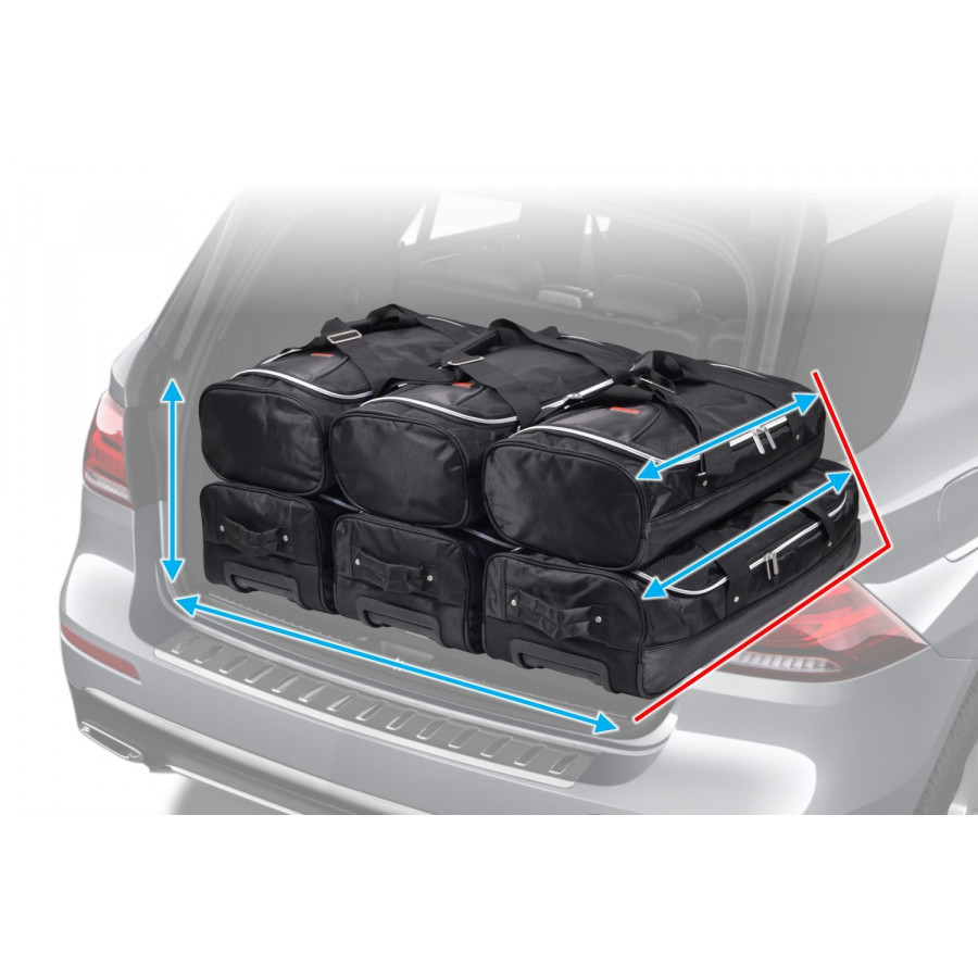 Each set consists of a bottom layer of 2 or 3 handy trolley bags with wheels and telescope handle. On top of that comes a layer of 2 or 3 matching handbags. Car-bags travel bags are available for Audi, BMW, Citroën, Hyundai, Peugeot, Volkswagen, Volvo and all other conventional brands.